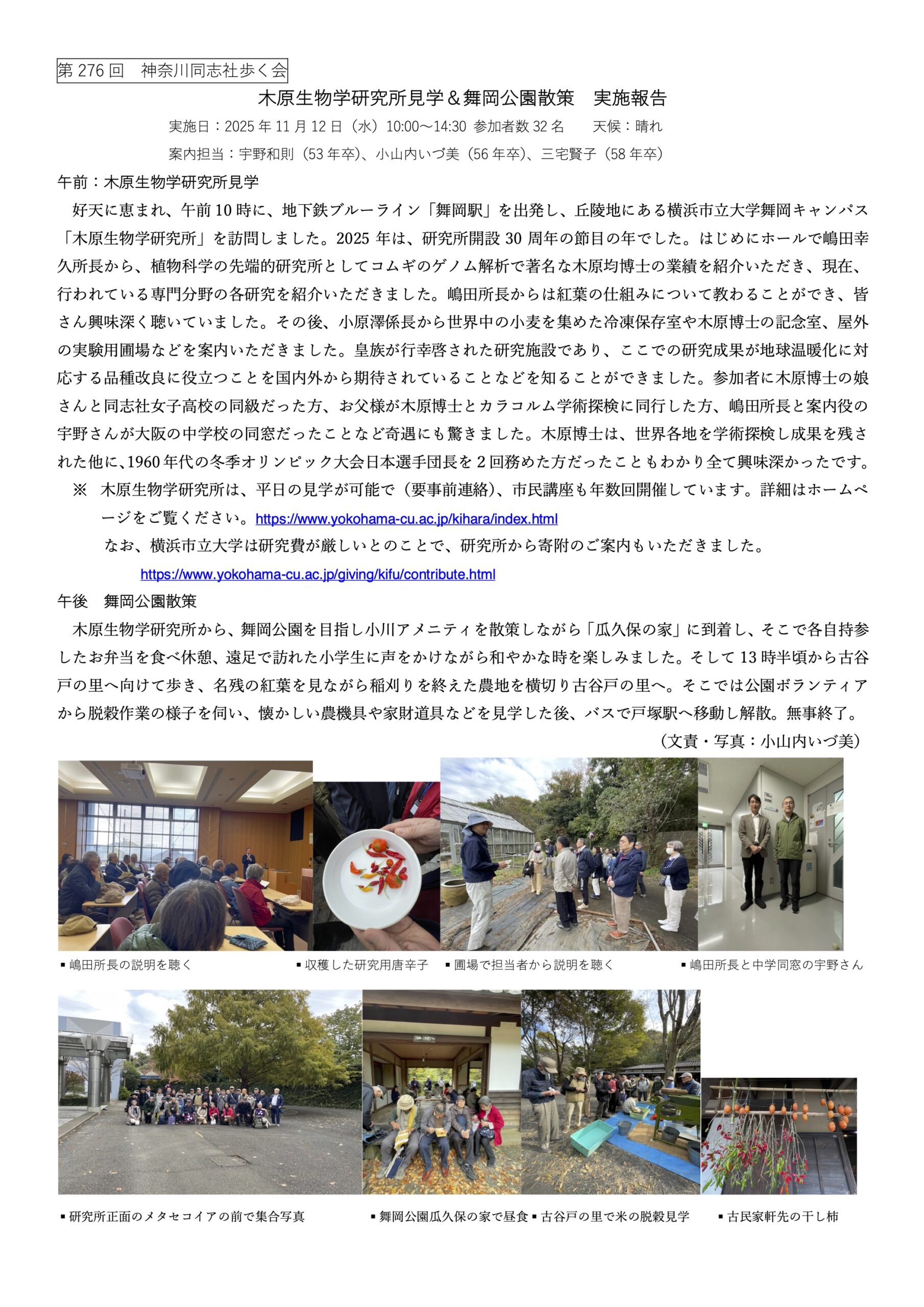 2025年11月12日 第276回神奈川同志社歩く会 木原生物学研究所見学&舞岡公園散策 実施報告