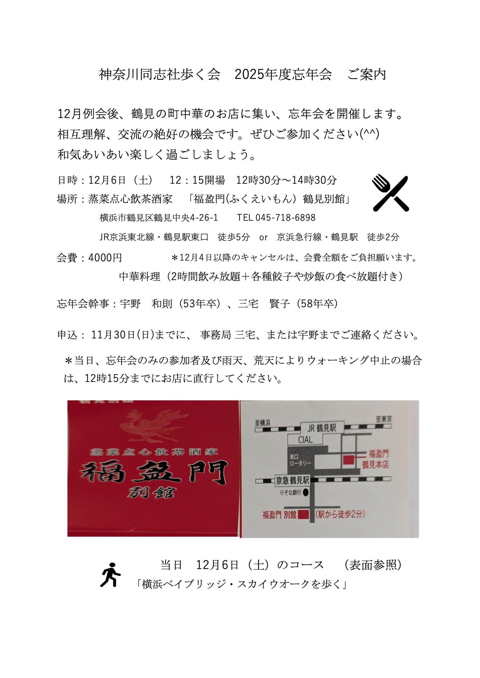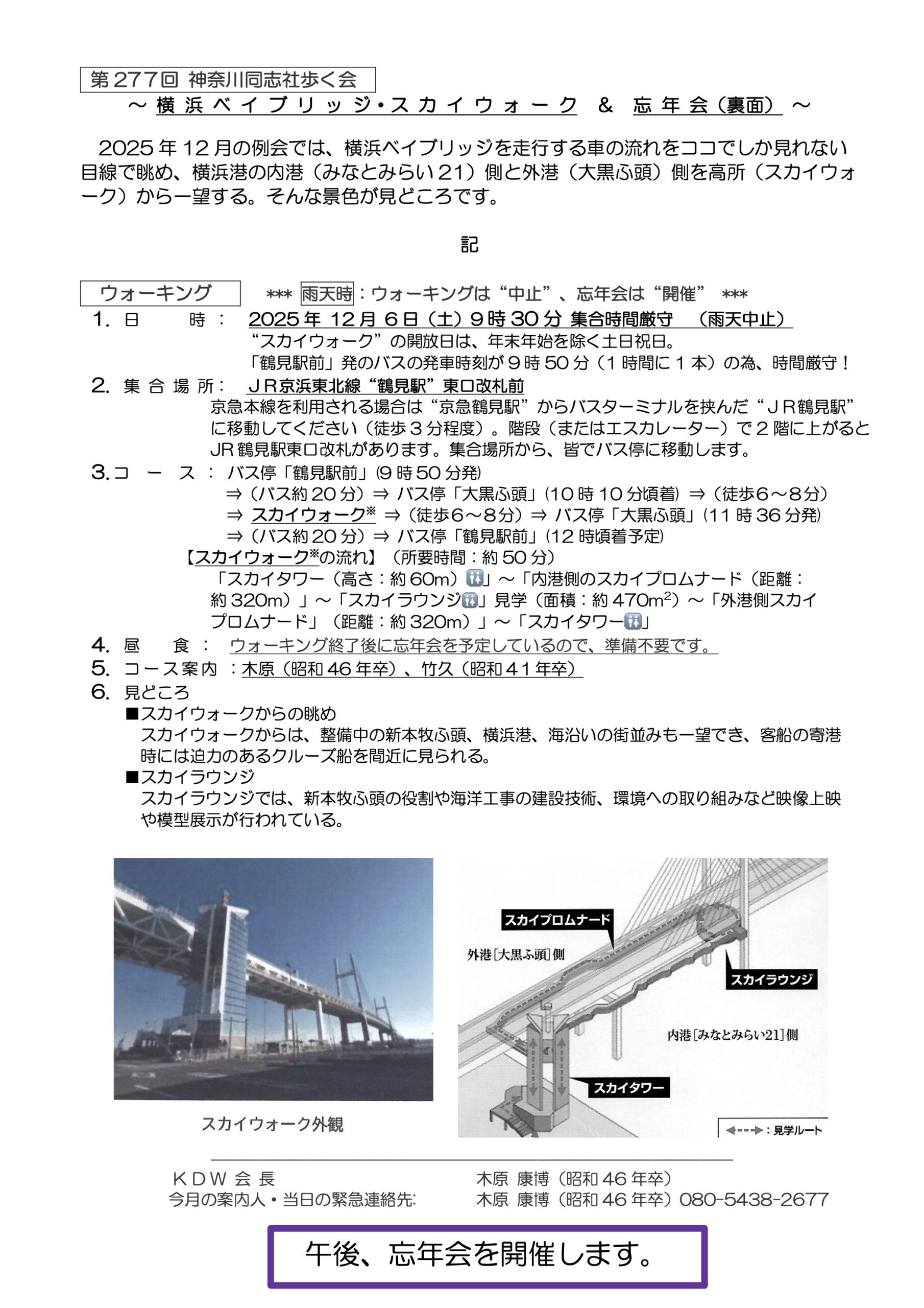2025年12月6日 第277回神奈川同志社歩く会 横浜ベイブリッジ・スカイウォーク&忘年会
