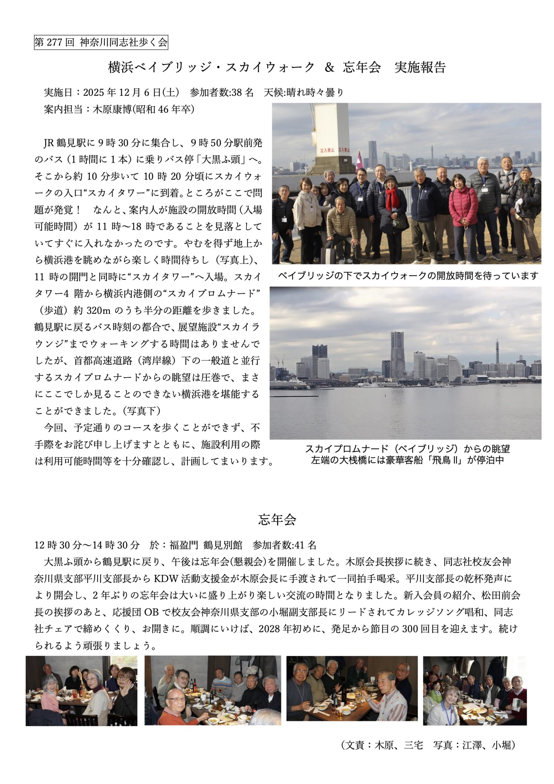 2025年12月6日 第277回神奈川同志社歩く会 「横浜ベイブリッジ・スカイウォーク&忘年会 実施報告」